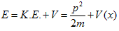 A general procedure to solve quantum mechanical problems was proposed by Erwin Schrödinger. Starting from a classical description of the total energy, E, which equals the sum of the kinetic energy, K.E., and potential energy, V(x>), or: |