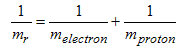 A more refined analysis includes the fact that the proton moves as the electron circles around it, despite its much larger mass. The stationary point in the hydrogen atom is the center of mass of the two particles. This refinement can be included by replacing the electron mass, m, with the reduced mass, mr, which includes both the electron and proton mass: |