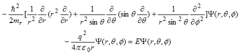 Schrödinger's equation is then solved by rewriting it using spherical coordinates, resulting in: |