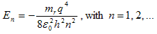 Where the subscript, n, was added to the energy, E,to indicate the energy corresponding to a specific value of, n. The resulting values of the energy, En, then equal: |