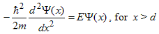 A solution to these equations is obtained by requiring continuity of the wave function and its derivative at x = 0 and x = d. This leads to the following set of homogenous equations: |