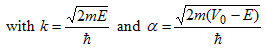 We now consider the situation where a wave with amplitude A is incident from the left side of the barrier. The general solution in each of the regions is then: |