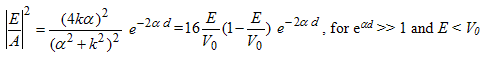 A common approximation assumes that the transmission through the barrier is small so that the eαd term is real an much larger than e-αd. The transmission probability then equals the square of ratio of the transmitted wave to the incident wave, or: |