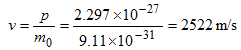 The velocity of an electron with this energy equals: