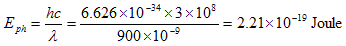 where h is Planck's constant, ν is the frequency of the light, c is the speed of light in vacuum and λ is the wavelength of the light. This relation between energy and frequency is identical to Max Planck’s assumption used to explain black body radiation, as described in section 1.2.3 |
