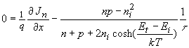 Continuity equation in steady state with SHR recombination |