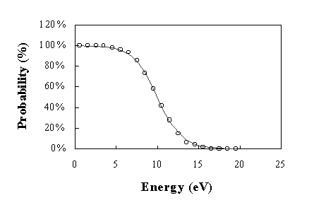| Figure 2.5.3 : | Probability versus energy averaged over the 24 possible configurations (circles) fitted with a Fermi-Dirac function (solid line) using kT = 1.447 eV and EF = 9.998 eV. ![]() |