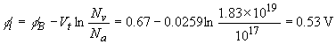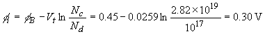 Note that this value differs from the one listed in Table 3.2.1 since the work function in vacuum was used. See the discussion in the text for more details. The built-in potential equals (using (3.2.3) and (2.6.12)):