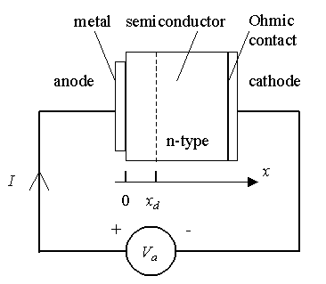 | Figure 3.2.1 : | Structure and sign convention of a metal-semiconductor junction |