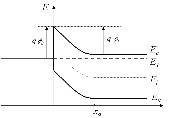 In addition, we define the built-in potential, φI, as the difference between the Fermi energy of the metal and that of the semiconductor. |