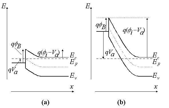 | Figure 3.2.4 : | Energy band diagram of a metal-semiconductor junction under (a) forward and (b) reverse bias |