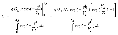and φ* = φ + φI - Va. The integral in the denominator can be solved using the potential obtained from the full depletion approximation solution, or: |