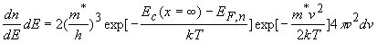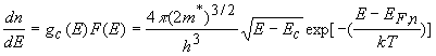 For non-degenerately doped material, the density of electrons between E and E + dE is given by: (using (2.4.7) and assuming EF,n < Ec - 3kT) |