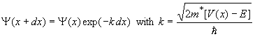 Assuming that V(x) - E is independent of position in a section between x and x+dx this equation can be solved yielding: |