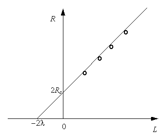 | Figure 3.5.3: | Resistance versus contact spacing, L, of a TLM structure. |