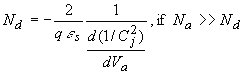 A capacitance-voltage measurement also provides the doping density profile of one-sided p-n diodes. For a p+-n diode, one obtains the doping density from: |
