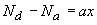 where it is assumed that no free carriers are present within the depletion region. For an abrupt p-n diode with doping densities, Na and Nd, the charge density is then given by: |
