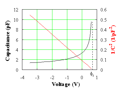 The capacitance-voltage characteristic and the corresponding 1/C2 curve are shown in Figure 4.3.2. |