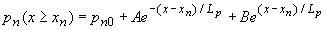 We now distinguish between the two limiting cases as discussed when calculating the ideal diode current, namely the "long" diode and a "short" diode. The carrier distribution, pn(x), in a "long" diode is illustrated by Figure 4.4.6 (a). |