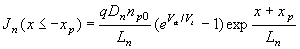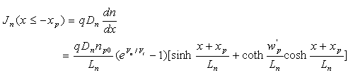 The current density in each region is obtained by calculating the diffusion current density using equations (2.7.24) and (2.7.25): |