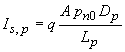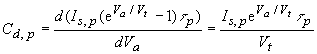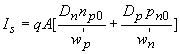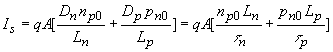 The current in a "short" diode is again obtained by adding the maximum diffusion currents in each of the quasi-neutral regions and ignoring the current due to recombination in the depletion region, yielding: |