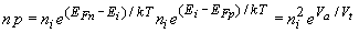 where the product of the electron and hole densities was obtained by assuming that the quasi-Fermi energies are constant throughout the depletion region, which leads to: |