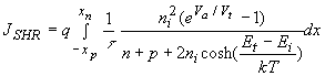 The current due to trap-assisted recombination in the depletion region is also obtained by integrating the trap-assisted recombination rate over the depletion region width: |