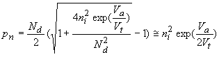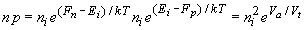 The carrier densities can be related to the constant quasi-Fermi energies and the product is independent of position: |