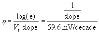 The ideality factor can also be obtained from the slope of the curve on a semi-logarithmic scale using: |