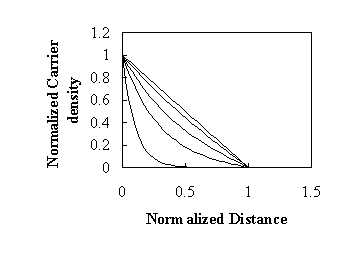 The resulting carrier density varies linearly throughout the quasi-neutral region and in general is given by: |