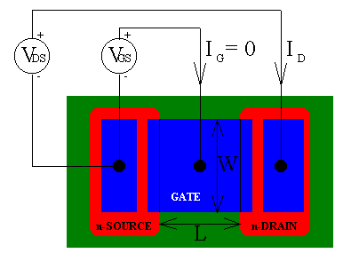 | Figure 7.2.1 : | Top view of an n-type Metal-Oxide-Semiconductor- Field-Effect-Transistor (MOSFET) |