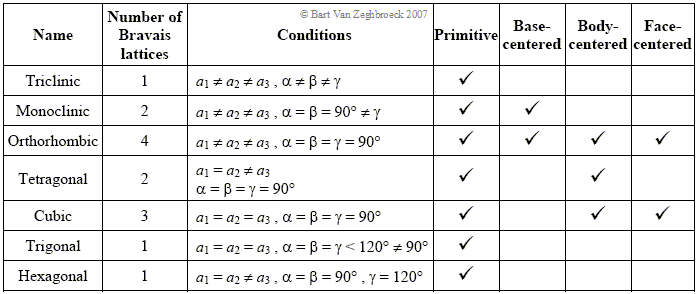 | Table 2.2.2.: | Bravais lattices of three-dimensional crystals ![]() |