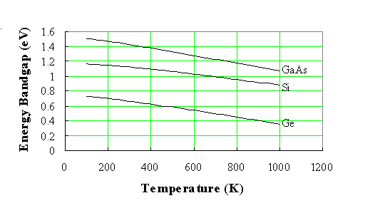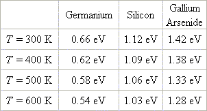 Similarly one finds the energy bandgap for germanium and gallium arsenide, as well as at different temperatures, yielding: