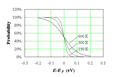 | Figure 2.5.1 : | The Fermi function at three different temperatures. ![]() |