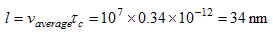 We now introduce the average values of the variables of interest, namely the thermal velocity, vth, the collision time, τc, and the mean free path, l. The thermal velocity is the average velocity of the carriers going in the positive or negative direction. The collision time is the time during which carriers will move with the same velocity before a collision occurs with an atom or with another carrier. The mean free path is the average length a carrier will travel between collisions. These three averages are related by: |