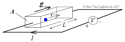 Assuming that all the carriers in the semiconductor move with the same average velocity, the current can be expressed as the total charge in the semiconductor divided by the time needed to travel from one electrode to the other, or: |