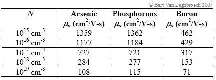 The resulting mobilities in units of cm2/V-s are listed for different doping densities in Table 2.7.3. |