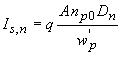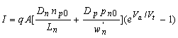 The current in a "short" diode is again obtained by adding the maximum diffusion currents in each of the quasi-neutral regions and ignoring the current due to recombination in the depletion region, yielding: |