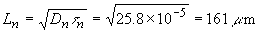 yielding I = 40.7 mA Note that the hole diffusion current occurs in the "short" n-type region and therefore depends on the quasi-neutral width in that region. The electron diffusion current occurs in the "long" p-type region and therefore depends on the electron diffusion length in that region. |