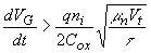 The time required to reach thermal equilibrium can be estimated by taking the ratio of the total charge in the inversion layer to the thermal generation rate of minority carriers. A complete analysis should include both the surface generation rate as well as generation in the depletion layer and the quasi-neutral region. A good approximation is obtained by considering only the generation rate in the depletion region and the quasi-neutral region. This yields the following equation: |